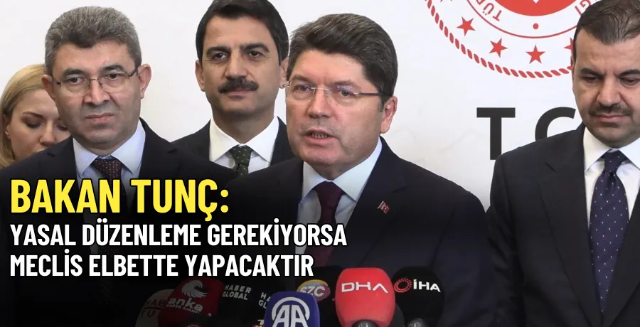 'Terörsüz Türkiye' sürecine ilişkin değerlendirmelere de yer veren Tunç, "Süreci sabote etmeye yönelik, süreci bozmaya yönelik, Türkiye'nin terörden kurtulmasını istemeyen çevrelerin maalesef sabotajları, provokasyonları olabilir. Bu provokasyonlara gelmeden sağduyulu bir şekilde çalışmalarımızı sürdürmemiz lazım. Burada terörün feshi hem içte hem dışta terör örgütünün silah bırakması devletimizin ilgili kurumları tarafından izleniyor. Bu izleme süreci komisyona da bilgi olarak aktarılıyor. Bunların hepsi raporda elbette ki yer alacaktır. Silah bırakma sürecinin izlenmesi neticesinde terör örgütünün fesiyle ilgili özellikle fiilen feshedilip edilmediği bu noktada sürecin nereye vardığı, bunlar devletimizin ilgili kurumları tarafından komisyona aktarılan hususlar. Bu çerçevede tabii komisyon, raporlarını hazırlayacaktır. Burada bir 'barış yasası vesaire' demek doğru değil. Burada terör örgütünün feshiyle beraber ortaya çıkacak yasal düzenleme ihtiyaçları, silah bırakmanın kesinleşmesiyle beraber, tasfiye ile ilgili olarak terör örgütünün tasfiyesine yönelik gereken yasalar varsa bunlar hukuk devleti ilkesi içerisinde, hukuk çerçevesi içerisinde gerçekleştirilecek hususlar. Bunlara 'barış yasası' demek doğru değil. Çünkü savaş halinde değildik. Bu ülke 41 yıldan bu yana terörle mücadele etti ve terörün istismar ettiği bütün alanları ortadan kaldırdık. Ayrımcılığı ortadan kaldırdık. Türkiye'nin dört bir tarafına doğusundan batısına üniversiteleriyle, hastaneleriyle, barajlarıyla, fabrikalarıyla hiçbir ayrım yapmadan Sayın Cumhurbaşkanımızın büyük bir gayretiyle büyük yatırımlar yaptık. Ayrımcılığı ortadan kaldırdık. Burada özellikle büyük acılar yaşatan, bize trilyonlarca kayıp verdiren terör örgütünün feshi sonrasında, terör örgütünün tasfiyesiyle ilgili hukuk devleti çerçevesi içerisinde yasal düzenleme gerekiyorsa bunu Meclis elbette ki yapacaktır. Ama bunun adı 'barış yasası' olmaz, 'geçiş yasası' da olmaz. Çünkü nereden nereye geçiyoruz? Burada rejim değişmiyor. Dolayısıyla terör örgütünün tasfiyesiyle ilgili ihtiyaç duyulan 'tasfiye yasaları' söz konusu olacaksa olur" diye konuştu.