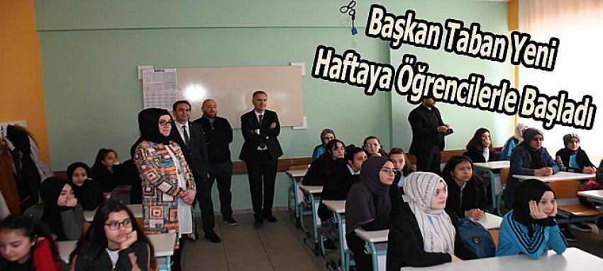 Sabah 08.30’da ilk ziyaret Nuri Pakdil İmam Hatip Ortaokuluna yapıldı. 8C sınıfı öğrencilerini sınıflarında ziyaret eden Başkan Taban, temizlik konusuna vurgu yaparak öğrencilerden destek istedi.