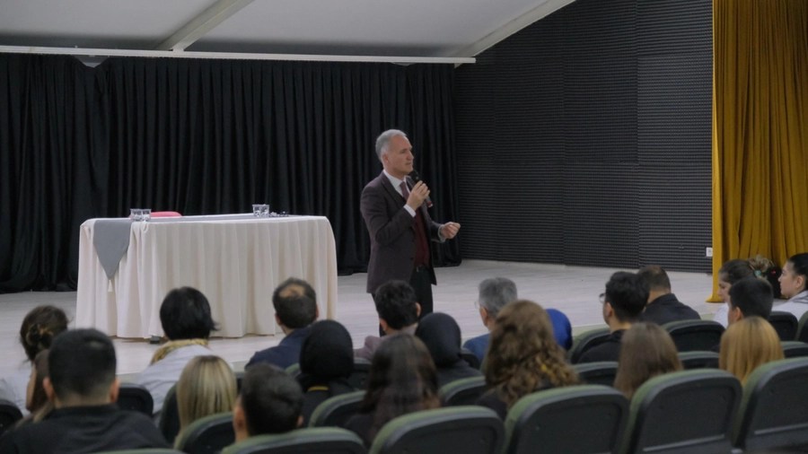 Başkan Taban öğrencilerle okulun çok amaçlı salonunda buluştu. Programda öğrencilerle birlikte okul idarecileri ve öğretmenler de yer alırken, Başkan Alper Taban geçtiğimiz yıl Genç Bakış Buluşmalarını başlattıklarını hatırlatarak “Bizler Genç Bakış Buluşmaları adı altında okullarımıza gidiyoruz. Özellikle lise öğrencilerimizle karşılıklı görüş alışverişlerinde bulunuyoruz. Burada sadece İnegöl Belediyemizin yaptığı hizmetler değil, sizlerin fikirleri nedir? Bizlerden beklentileriniz nedir? Hepimiz bu şehirde yaşıyoruz, mutlaka fikir ve önerileriniz vardır mukabilinden bu düşünceleri duymak için bu buluşmaları yapıyoruz. Sadece gençlerle de değil; hanımefendilerle, beyefendilerle, mahalle buluşmalarında semt sakinleriyle herkesle her kesimle bir araya gelmeye gayret ediyoruz. İlk dönemimde göreve başlarken birlikte yönetelim demiştim. Katılımcı yönetim anlayışı demiştim. Bizlere yönetirken destek olun diye ifade etmiştik. Bu buluşmalarla da bu bildirimleri toplamaya devam ediyoruz. Tabi sadece bu buluşmalarla bu iş olmaz. Sonrasında da farklı iletişim kanallarıyla bunun devam etmesini arzu ediyoruz. Sosyal medyadan, whatsapp hatlarımızdan, Çözüm Merkezimizden bu iletişim sürekli devam etsin. Toplum katılmayı öğrensin istiyoruz. Halkımızın denetleyici, kontrol eden, gören göz olmasını istiyoruz. Toplumlar kendilerini böyle geliştirmişler” ifadelerinde bulundu.