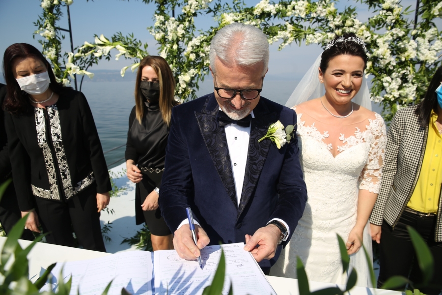 Gelin ve damadın alkışlar eşliğinde “Evet” dediği törenin sonunda Mustafa Bozbey ve Lale Karabıyık evlilik cüzdanını geline vererek mutluluklar dilediler.