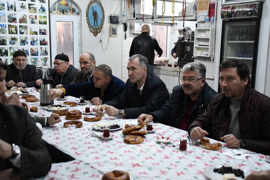 Belediye Başkanı Alper Taban ile birlikte Başkan Yardımcıları; Rıdvan Kocaağa, Fevzi Dülger, AK Parti İlçe Başkanı Mustafa Ersan, AK Partili yöneticiler ve meclis üyelerinin katıldığı Bereket Sofrası buluşmasında, sabah namazının kılınmasının ardından cami lokalinde hazırlanan kahvaltıya geçildi. Burada vatandaşla birlikte simit, zeytin ve peynir ile kahvaltı yapıldı. Mahallenin sorunları, bu buluşmada masaya yatırıldı. Vatandaşlar mahalleleri hakkındaki talepleri ilk ağızdan Başkan Alper Taban’a iletme fırsatı buldu.