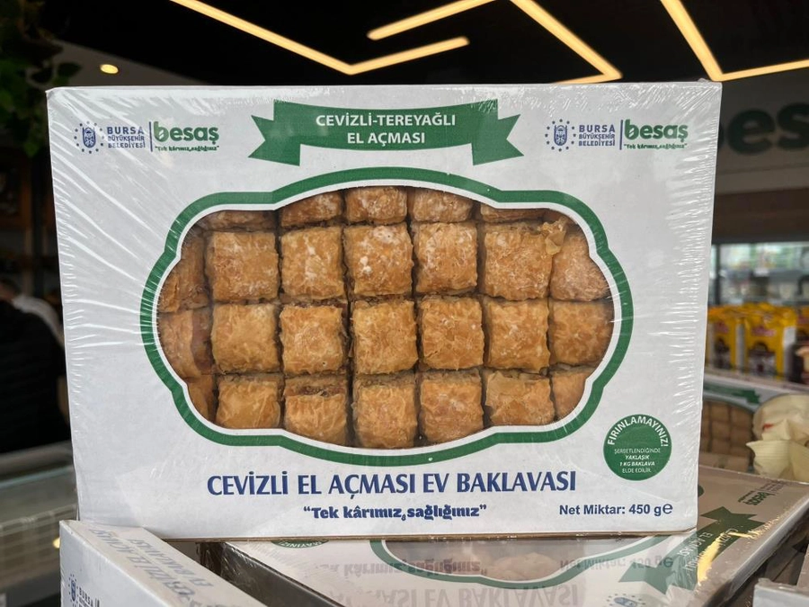 Bursa Büyükşehir Belediyesi iştiraki BESAŞ tarafından bayram öncesi satışa sunulan cevizli baklava, kısa sürede tükenerek yoğun ilgi gördü.