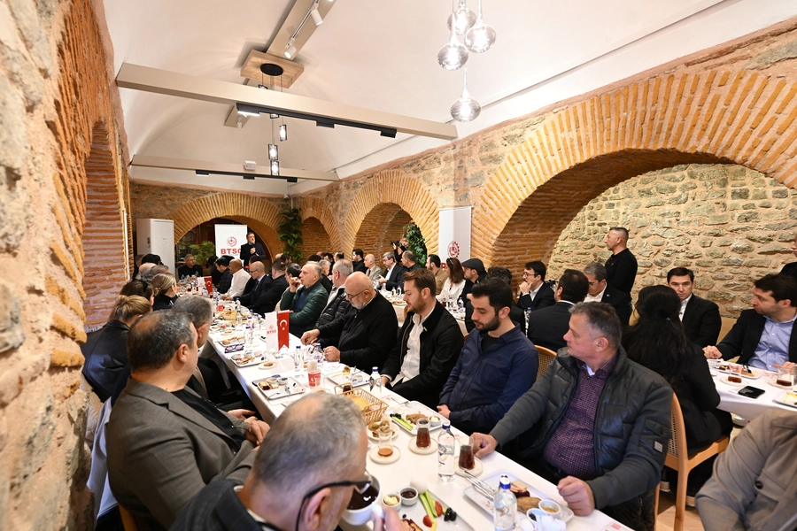 BTSO Yönetim Kurulu Başkanı İbrahim Burkay, yönetim kurulu üyeleri ve meclis divan üyeleri, Bursa Tarihi Çarşı ve Hanlar Birliği (BTÇH) Başkanı İsa Altıkardeş, çarşı başkanları ve bölgedeki BTSO üyeleri ile bir araya geldi. Koza Han’da gerçekleştirilen programda konuşan İbrahim Burkay, Tarihi Çarşı ve Hanlar Bölgesi’nin Bursa’nın kültürel kimliğini taşıyan güçlü bir okul niteliğinde olduğunu ifade ederek, “Çarşı bizim doğduğumuz, büyüdüğümüz ve mesleki meşguliyetimizin şekillendiği bölge. Bugün bu bölgeden yetişen birçok dostumuz hem Bursa’ya hem ülkemize büyük değer katmaya devam ediyor.” dedi.