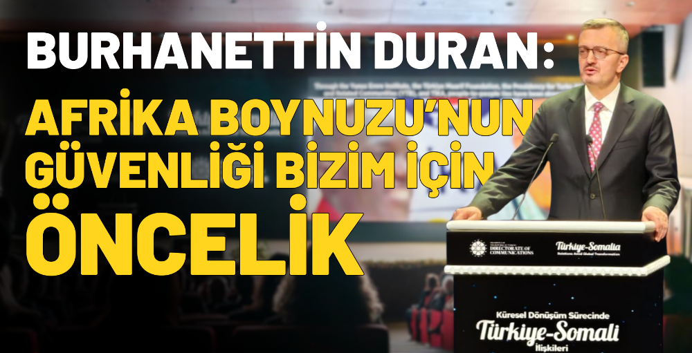 Duran, İletişim Başkanlığı’nda düzenlenen “Küresel Dönüşüm Sürecinde Türkiye-Somali İlişkileri Paneli”nde yaptığı konuşmada, Türkiye’nin Afrika’ya yaklaşımının diğer ülkelerden farklı olduğunu vurguladı. “Afrika, kadim medeniyetlerin, doğal güzelliklerin ve zengin kültürel çeşitliliğin kıtasıdır. Genç nüfusu, kaynak zenginliği ve bölgesel entegrasyon adımlarıyla küresel ekonominin yeni çekim merkezlerinden biridir. Bu nedenle Afrika ile ilişkilerimizi eşitlik, karşılıklı saygı ve ortak kazanım anlayışıyla sürdürüyoruz. Yatırım, ticaret, teknoloji, eğitim, altyapı ve savunma sanayii alanlarında birlikte üretmeyi ve büyümeyi hedefliyoruz” ifadelerini kullandı.