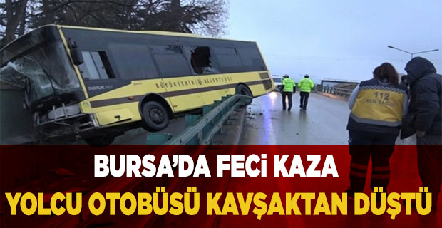 Köprülü kavşaktan düşen otobüs, kazı çalışması yapılan eski meslek lisesinin beton duvarına çarpıp havada asılı kaldı.