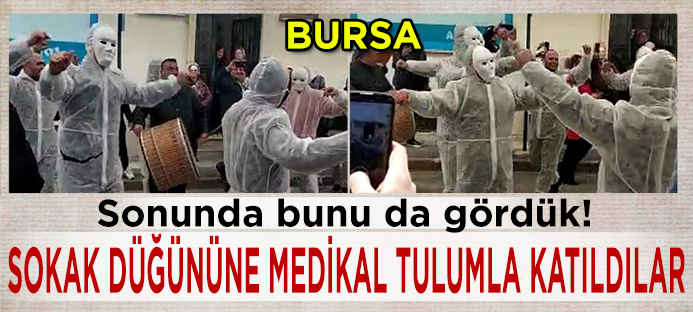 Bursalılar ne eğlenceden vazgeçiyor ne de tedbir almaktan. Bir sokak düğününde kaydedilen görüntülerde gençlerin medikal tulum ve maske giymesi dikkat çekti.