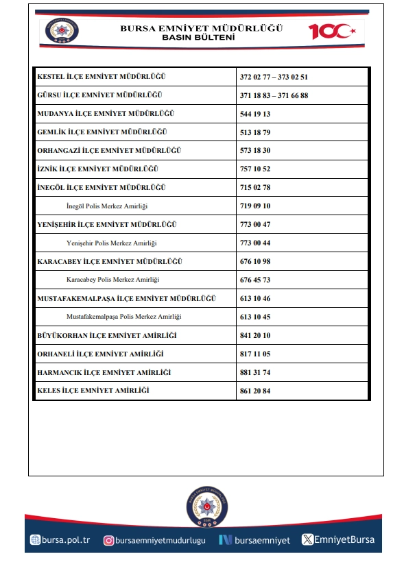 Bursa Emniyeti’nden yılbaşı için önemli iletişim listesi