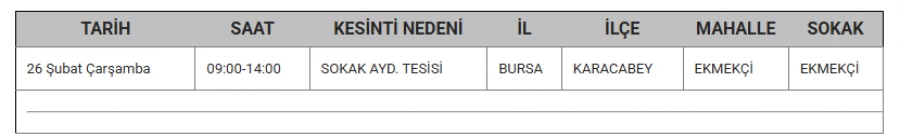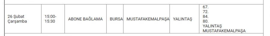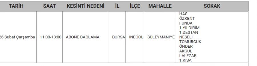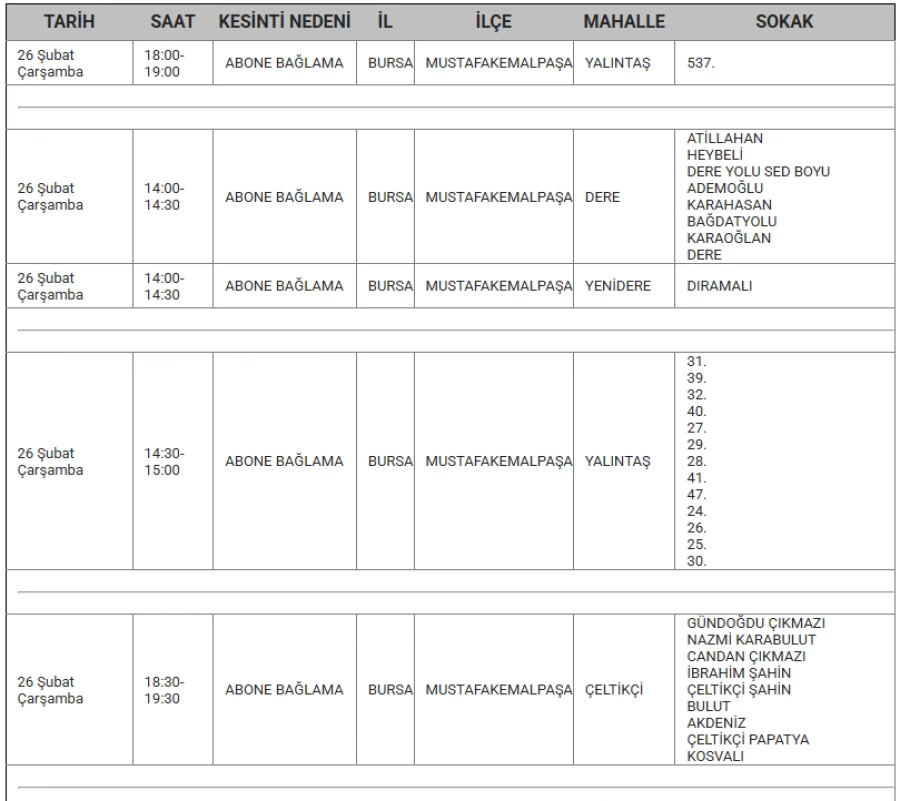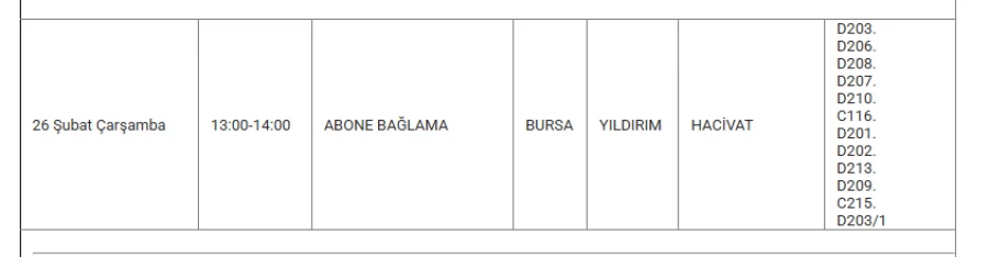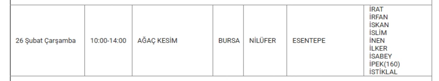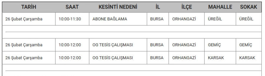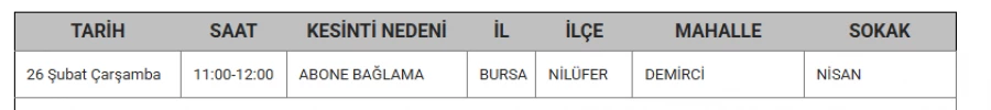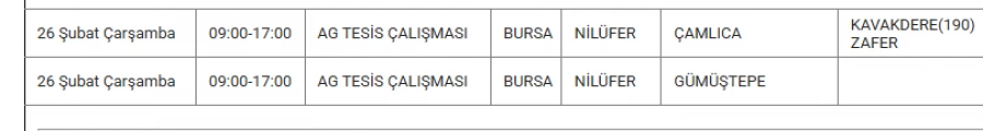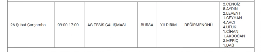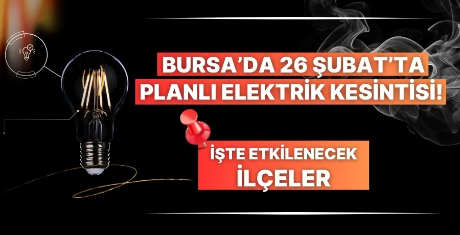 Bursa'da 26 Şubat'ta bazı ilçelerde elektrik kesintisi yapılacak.