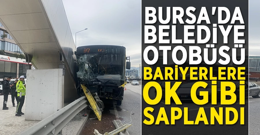 Bursa'da sürücüsünün kontrolünden çıkan belediye otobüsü bariyerlere ok gibi saplanırken, kazada 5 yolcu yaralandı.
