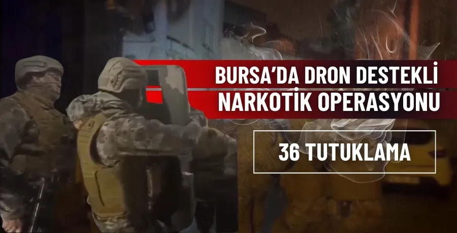 Bursa’da narkotik polisinin gerçekleştirmiş olduğu insansız hava aracı destekli ve bin personelin katıldığı operasyonda koçbaşları ile kırılan kapıların ardında 36 uyuşturucu taciri kıskıvrak yakalandı.