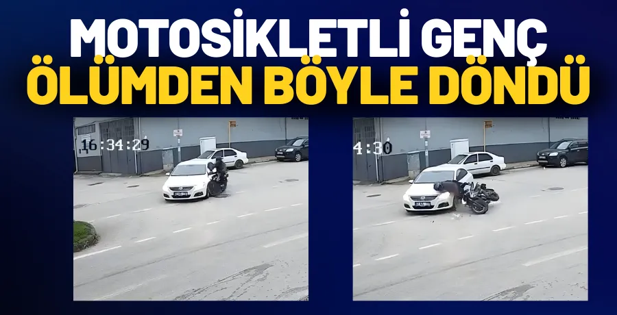 Çarpmanın etkisiyle motosikletli genç otomobilin üzerine savruldu. Kazada araçlarda maddi hasar oluşurken, büyük şans eseri can kaybı yaşanmadı.