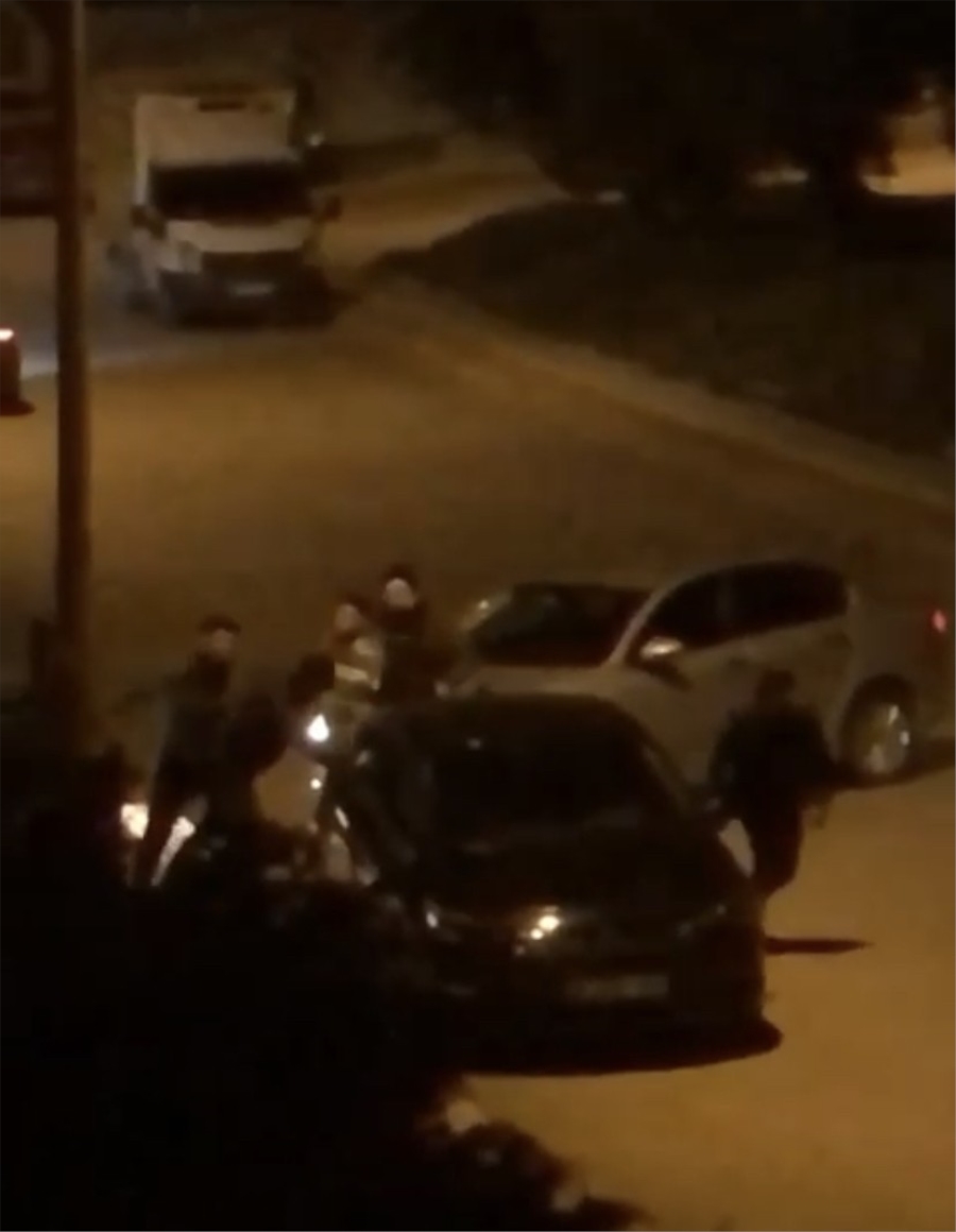 Edinilen bilgiye göre, 2 araç sürücüsü trafikte yol verme meselesi yüzünden tartışmaya başladı. Aralarındaki tartışma kısa sürede kavgaya dönüştü. Sürücülerin arkadaşlarını çağırmasıyla birlikte kavga daha da büyürken, yumrukların havada uçuştuğu bu anlar cep telefon kamerasına yansıdı.