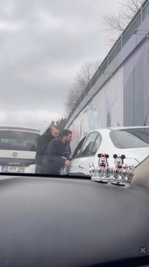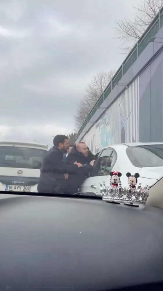 Bursa’da Merinos Kavşağı Batçık mevkiinde trafikte yol verme nedeniyle çıkan tartışma kavgaya dönüştü. Ticari araçtan inen üç kişi otomobil sürücüsüne saldırdı, olay güvenlik kamerasına yansıdı.