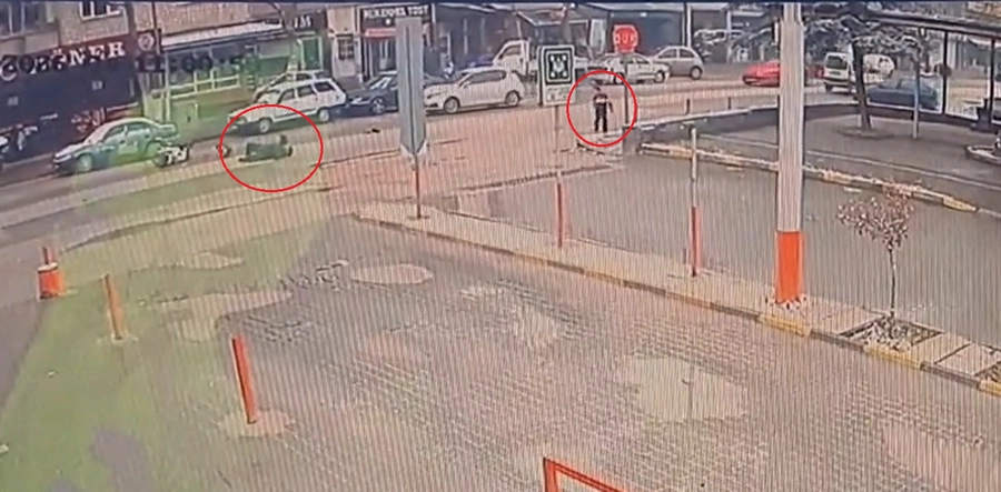 Öte yandan kaza, çevredeki bir iş yerinin güvenlik kamerasına yansıdı. Görüntülerde; N.T. isimli çocuğun, yolun karşısına geçmek için park halindeki iki otomobilin arasından koşarak çıktığı, çocuğu son anda fark eden motokuryenin direksiyonu kırdıktan sonra devrilen motosikletten düşerek sürüklendiği görüldü. N.T.'nin de panikle arkasına dönüp, baktıktan sonra yolun karşısına geçtiği, daha sonra koşarak geri döndüğü anlar, görüntülere yansıdı.