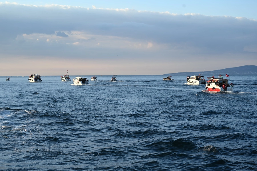 Bursa'da Filistin’e Destek Platformu öncülüğünde ve AK Parti İl ile İlçe Başkanlıklarının destekleriyle Mudanya Güzelyalı Mahallesi’nden yaklaşık 10 tekne, Türk ve Filistin bayraklarıyla “Kararlıyız, Sumud’un Yanındayız” sloganı eşliğinde Marmara Denizi’ne açıldı.