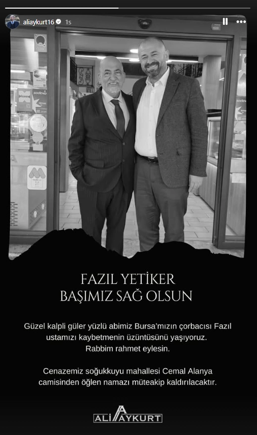 Ali Aykurt sosyal medya üzerinden yaptığı paylaşım ile acı haberi duyurdu:
