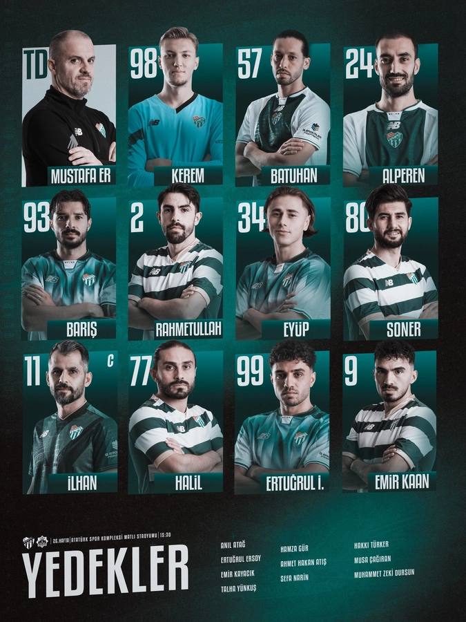 Geçen hafta deplasmanda Menemen FK’yı 3-1 mağlup eden yeşil-beyazlılar, Muşspor maçı öncesi puan kaybı yaşamak istemiyor. Takımda sakatlığı süren kaptan Muhammet Demir ile Salih Kavrazlı’nın yanı sıra sezonu kapatan Tayfun Aydoğan ve tedavisi süren Baran Başyiğit forma giyemeyecek. Emir Kaan Gültekin’in durumu ise maç saatinde netleşecek.