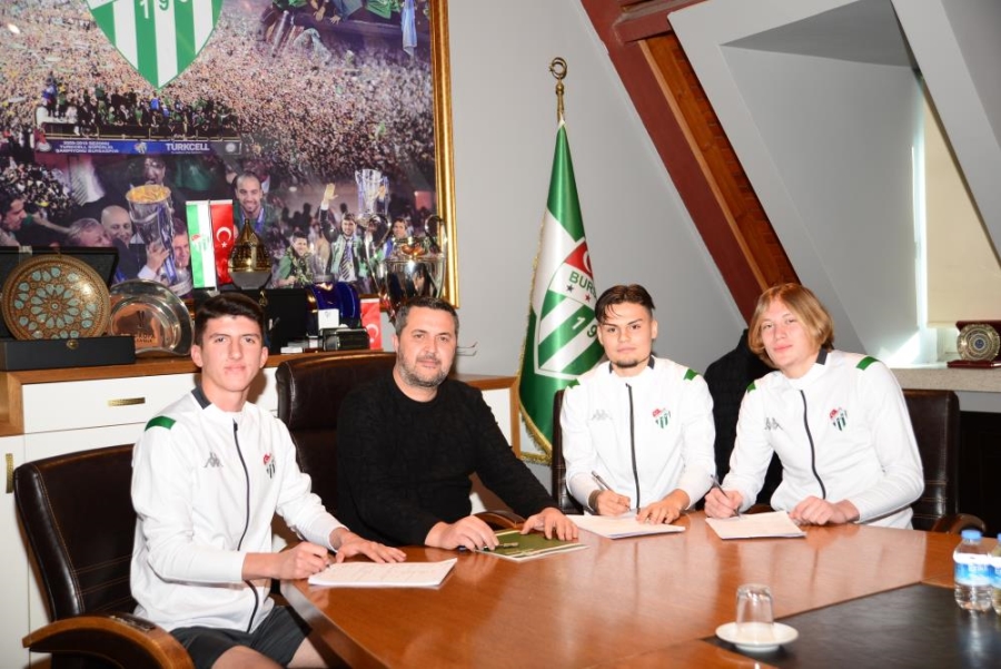 Bursaspor altyapısına yatırım yapmaya devam ediyor. Yeşil beyazlılar, Vakıfköy’de yetişen Hasan Basri Ünal, Talha Yakın ve Taha Altıkardeş’e profesyonel imza attırdı.