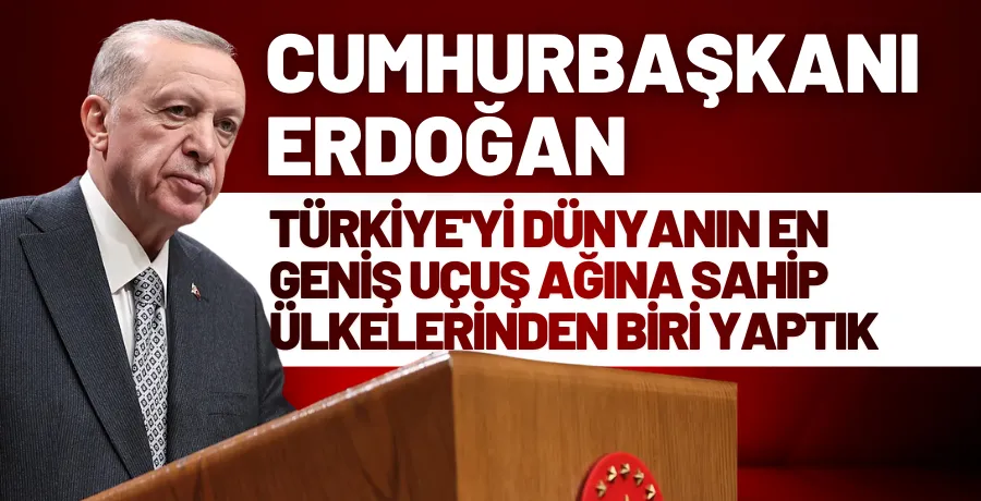 Erdoğan, bugün hizmet zincirine yeni bir halka daha eklemenin bahtiyarlığı içinde olduklarını vurgulayarak, "Ülkemizi daha yüksek irtifalara çıkarmak için diğer alanlarda olduğu gibi havacılık sektöründe de yoğun çaba harcıyoruz. Şuraya özellikle dikkatinizi çekmek isterim; Türkiye olarak 4 saatlik uçuş süresiyle 67 ülkenin merkezinde yer alıyoruz. Bu avantajlı konumun sunduğu potansiyeli en üst seviyeye çıkarmak, en etkili şekilde değerlendirmek için son 23 yılda büyük yatırımlar yaptık. 'Dünyada ulaşamadığımız hiçbir nokta kalmayacak' hedefiyle Türkiye'yi dünyanın en geniş uçuş ağına sahip ülkelerinden biri yaptık. 2002'de 26 olan aktif havalimanı sayımızı, 2024'te hizmete aldığımız Çukurova Uluslararası Havalimanı ile bugün 58'e çıkardık. İnşası devam eden Yozgat ve Bayburt-Gümüşhane havalimanlarımızla birlikte bu sayı yakın zamanda 60’a yükselecek. Nereden nereye. Aynı dönemde hava ulaştırma anlaşması yaptığımız ülkelerin sayısını 81'den 175'e taşıyarak Türkiye'yi dünyada en fazla hava ulaşım anlaşması bulunan ülke haline getirdik. Önümüzdeki dönemde Uluslararası Sivil Havacılık Örgütü üyesi 192 ülkenin tamamıyla hava ulaşım anlaşması imzalamayı hedefliyoruz. Diğer taraftan 50 ülkede 60 nokta olan dış hat sayımızı 133 ülkede 356 noktaya çıkardık. Bir başka çarpıcı rakam; 2002’de iç ve dış hatlarda seyahat eden yolcu sayısı yalnızca 34,5 milyondu. 2025 yılında bu sayı 247 milyonu aştı. Nereden nereye" diye konuştu.