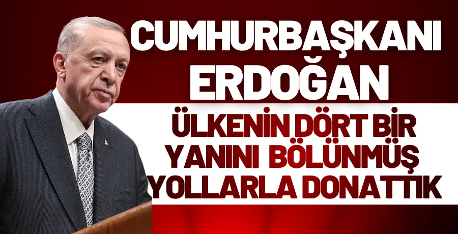 Erdoğan, göreve geldiklerinde yalnızca 6 bin 101 kilometre olan bölünmüş yol uzunluğunun, 23 yılda yaklaşık beş kat artırıldığını hatırlatarak, bugün 77 ilin bölünmüş yollarla birbirine bağlandığını dile getirdi.