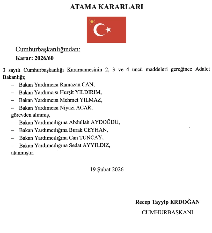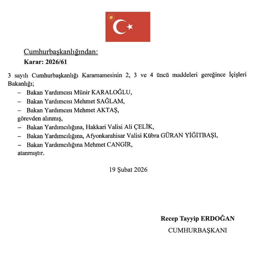 Kararda yer alan isimler doğrultusunda yapılan atamalar 19 Şubat 2026 tarihli Resmi Gazete’de yayımlandı.