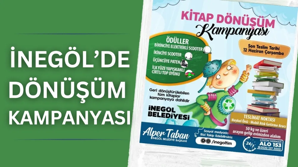 İnegöl Belediyesi’nin geçtiğimiz yıl “Kitaplar Bisiklete Dönüşüyor” sloganıyla başlattığı eski okul kitaplarının geri dönüşüme kazandırılması kampanyası büyük ilgi görmüştü. 2023-24 eğitim öğretim yılının bitimine sayılı günler kalırken, bu yıl da benzer bir kampanyanın startı verildi. İnegöl Belediyesi öğrencilere hem karne hediyesi olacak hem de eski kitapların geri dönüşüme kazandırılmasını sağlayacak kampanyanın başladığını duyurdu. Kullanılmış ve geri dönüştürülebilecek tüm kitapları kapsayan kampanya ile en fazla kitap getiren kişi elektrikli scooter, ikinci normal scooter, üçüncü ise paten kazanacak. İlk 100’e girmeyi başaranlar ise yapışkanlı cırtlı top oyunu kazanacak. Kitaplar 12 Haziran Çarşamba günü mesai bitimine kadar İnegöl Belediyesine teslim edilebilecek.