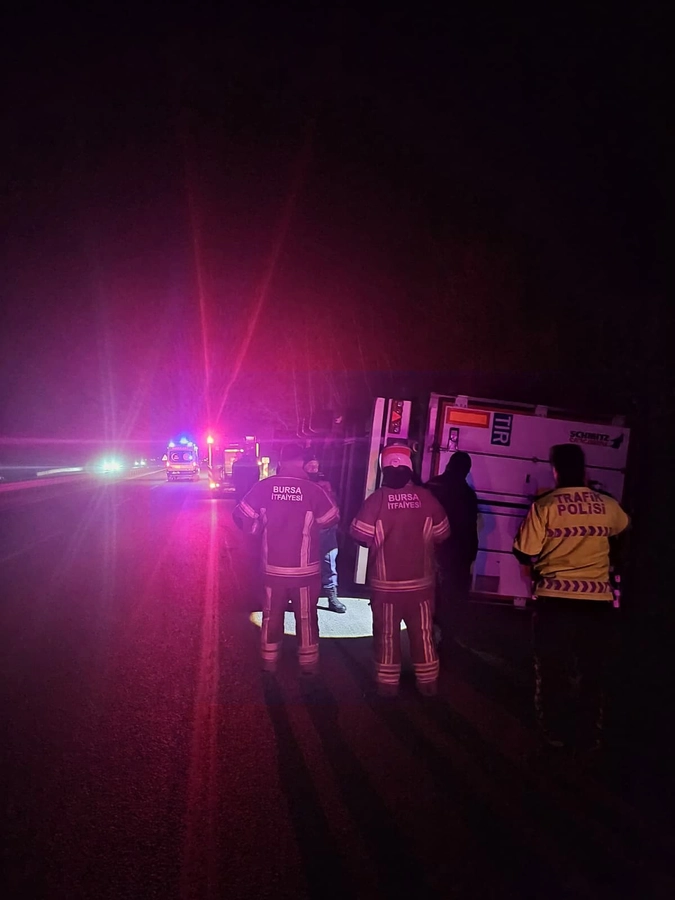 Bursa-Ankara karayolu üzerinde sabahın erken saatlerinde meydana gelen kazada, patates yüklü bir tır kontrolden çıkarak devrildi.