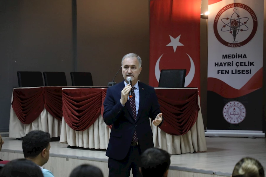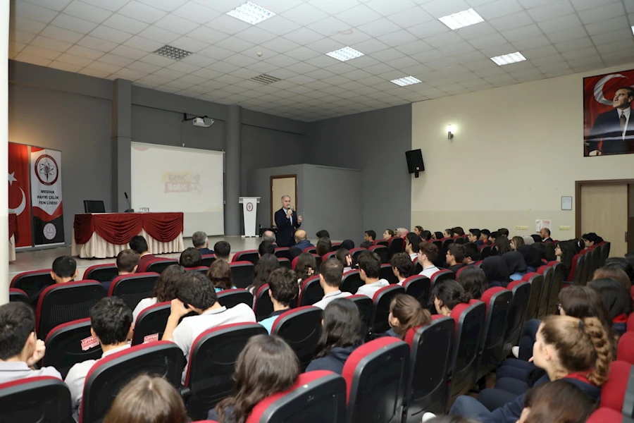 Genç Bakış buluşmaları kapsamında Başkan Alper Taban bugün Mediha Hayri Çelik Fen Lisesine konuk oldu. Okul çok amaçlı salonunda yapılan buluşmada kısa bir açılış konuşması yaparak okulu tanıtan Mediha Hayri Çelik Fen Lisesi Müdürü Fatih Selvi, “Okulumuz İnegöl’ün lokomotifi… İnegöl, Bursa ve Türk Milli Eğitiminin yüz akı bir okul. Okulumuz akademik başarılarıyla, sosyal ve kültürel başarılarıyla aslında Türk milli eğitimine büyük katkılar sunan bir okul. Bu yıl mezun ettiğimiz her 2,8 öğrenciden biri, tıp fakültesine gidebilecek seviyede puan aldı” dedi.