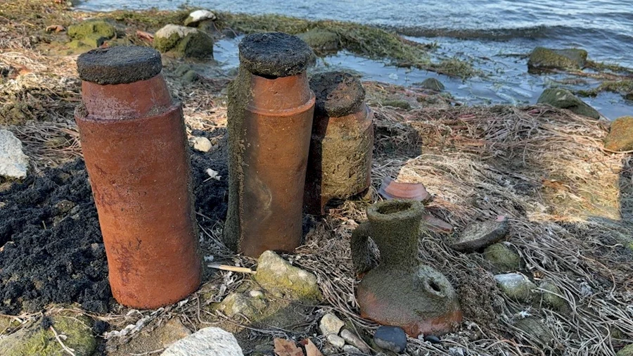Polis, ağzı kapalı küpleri ve çevresindeki tarihi kalıntıları müzeye teslim etti.