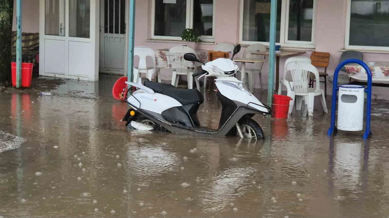 Malkara ilçesinde akşam saatlerinde aniden bastıran sağanak, kısa sürede sokakları dereye çevirdi. Hasköy Mahallesi’nde bir kahvehaneyi su basarken, içeride bulunan vatandaşlar mahsur kaldı. Su seviyesi hızla yükselince çözüm arayan vatandaşlar, kahvehanedeki sandalyeleri yan yana dizerek kendilerine yol yaptı. Vatandaşlar su birikintisinin içinden bu şekilde çıkarken, mahallede birçok evin avlusu ve sokaklar da suyla doldu.