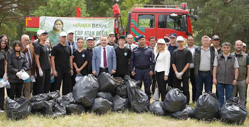 Balıkesir’in Edremit ilçesinde Kazdağları’nda "Orman Benim" etkinliği kapsamında ormanlık alan çöplerden arındırıldı. Etkinlikte yarım saat içinde öğrenciler ve protokol üyeleri yarım ton atık ve çöp topladı.