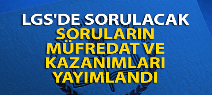 Milli Eğitim Bakanlığınca, LGS kapsamındaki merkezi sınavda sorulacak soruların müfredat ve kazanımları, http://ttkb.meb.gov.tr/ adresinde yayımlandı.