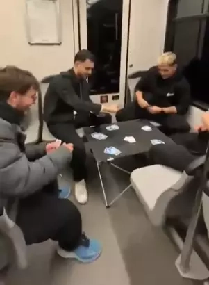 Kent içi ulaşım için metroyu tercih eden 4 kişilik arkadaş grubu, vagonun en arkasına geçip, açtıkları kamp masasında kağıt oyunu oynayarak seyahat etti. Grubun yolculuğu, metrodaki diğer yolcular tarafından cep telefonu kamerasıyla kaydedildi.