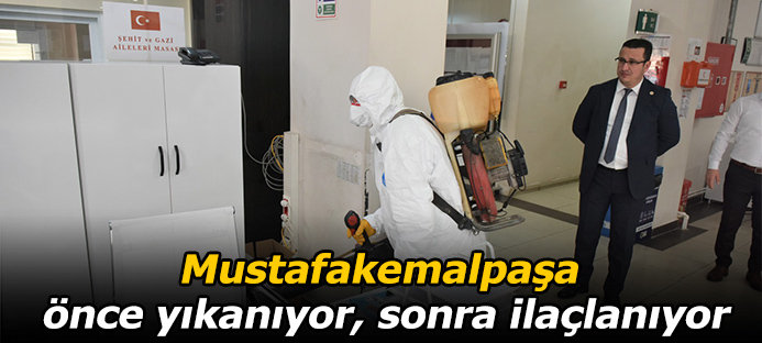 Mustafakemalpaşa Belediyesi Temizlik İşleri Müdürlüğü ekipleri yollarda, parklarda yıkama çalışmaları yürütürken, Veterinerlik İşleri Müdürlüğü ekipleri ise virüslere karşı başta okul, hastane ve sağlık merkezleri ile yoğun ve toplu kullanım alanları ile çöpkonteynerlerında ilaçlama çalışmasını aralıksız olarak sürdürüyor.