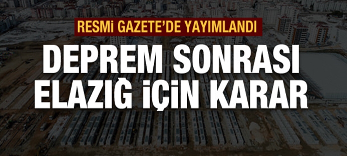 Cumhurbaşkanı Recep Tayyip Erdoğan’ın imzasıyla yayımlanan karara göre, Elazığ kent merkezi Rüstem Paşa Mahallesi'ndeki 6.02 hektarlık bölge, Afet Riski Altındaki Alanların Dönüştürülmesi Hakkındaki Kanun gereğince riskli alan ilan edildi. Kararda, bölgenin sınır krokisi ile koordinat listesi de yer aldı.