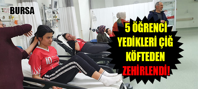 Bursa'nın Gemlik ilçesinde Şükrü Şenol Orta Okulu 8'inci sınıf örgencileri, Gemlik Kapalı Spor Salonunda oynadıkları voleybol müsabakası sonrasında dışarıda yemek yedi. 5 öğrenci, yedikleri çiğ köftenin ardından istifra etmeye başladı. Olay yerine gelen 112 ekipleri tarafından ilk müdahaleleri yapılan öğrenciler, Gemlik Devlet Hastanesine kaldırıldı. Öğrencilerin çiğ köfteleri farklı farklı yerlerden, ama sosu aynı yerden aldıklarını ifade etmesinin ardından market ve esnaftan numuneler alındı. Numunelerin incelenmesi ve öğrencilerin sağlık raporundan sonra zehirlenmenin tam sebebi tespit edilecek.