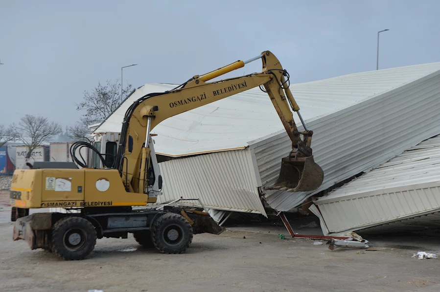 Osmangazi Belediyesi, verimli tarım arazilerinin sanayi ve konut alanına dönmemesi için kaçak yapılaşmaya karşı adeta savaş veriyor. Tarım arazileri üzerine kaçak olarak inşa edilen konut, işyeri, fabrika ve depo gibi yapılar belediye ekipleri tarafından tek tek tespit edilerek, yıkılıyor. Tarım arazilerini mercek altına alan Yapı Kontrol Müdürlüğü ekipleri, son olarak Ahmetbey Mahallesi’nde ruhsatsız olarak inşa edildiği belirlenen bir depoyu yıktı.