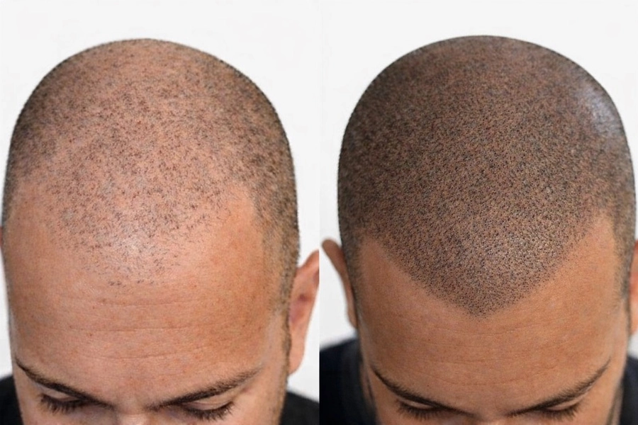 Saç simülasyonu, gerçek saç köklerinin görünümünü taklit ederek saçsız veya seyrek alanlarda dolgun ve doğal bir görüntü oluşturuyor. Klasik dövmeden farklı olarak saç simülasyonunda kullanılan pigmentler, cilt tonuna uygun özel formüllerle hazırlanıyor ve her nokta bağımsız bir saç kökü görünümü verecek şekilde hassasiyetle yerleştiriliyor. Sonuç; kısa tıraşlı, gür ve doğal görünen bir saç görüntüsü oluyor.