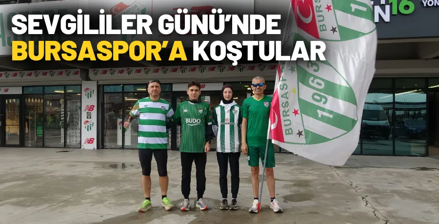 BURSASPOR taraftarı 4 genç, 14 Şubat Sevgililer Günü’nde “Sevgiliye koşuyoruz” sloganıyla anlamlı bir etkinliğe imza attı. Timsah Arena Stadyumu’nda buluşan taraftarlar, 4 metrelik Bursaspor bayrağıyla İbrahim Yazıcı Özlüce Tesisleri’ne kadar 10 kilometre koştu.