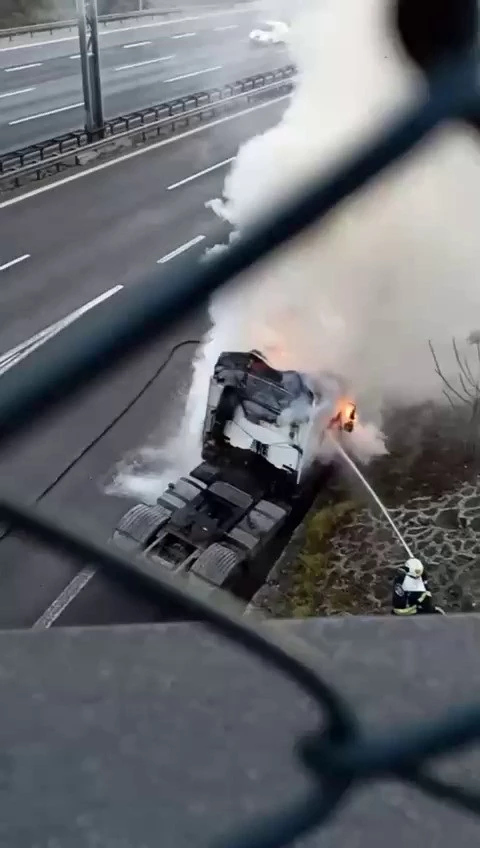 Yangın, İzmit ilçesi Bekirdere Rampası mevkii TEM Otoyolu’nda meydana geldi. Sürücüsü öğrenilemeyen seyir halindeki tır, bilinmeyen nedenle yanmaya başladı. Tır sürücüsü aracı sağa çekerek 112 Acil Çağrı Merkezi’ haber verdi. İhbar üzerine olay yerine itfaiye ekipleri sevk edildi. Kısa sürede olay yerine gelen itfaiye ekipleri, yanan tırı söndürdü.