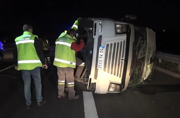 Kaza Orhangazi-izmir otobanı Örnekköy yakınlarında meydana geldi,alınan bilgilere göre Bursa isitkametinde seyir halinde olan Mahmud Al Ahmet yönetimindeki minübüse arkadan gelen bir otomobil hızla çarptı,çarpmanın şiddeti ile içi suriyeli göçmenler ile dolu minibüs devrildi.