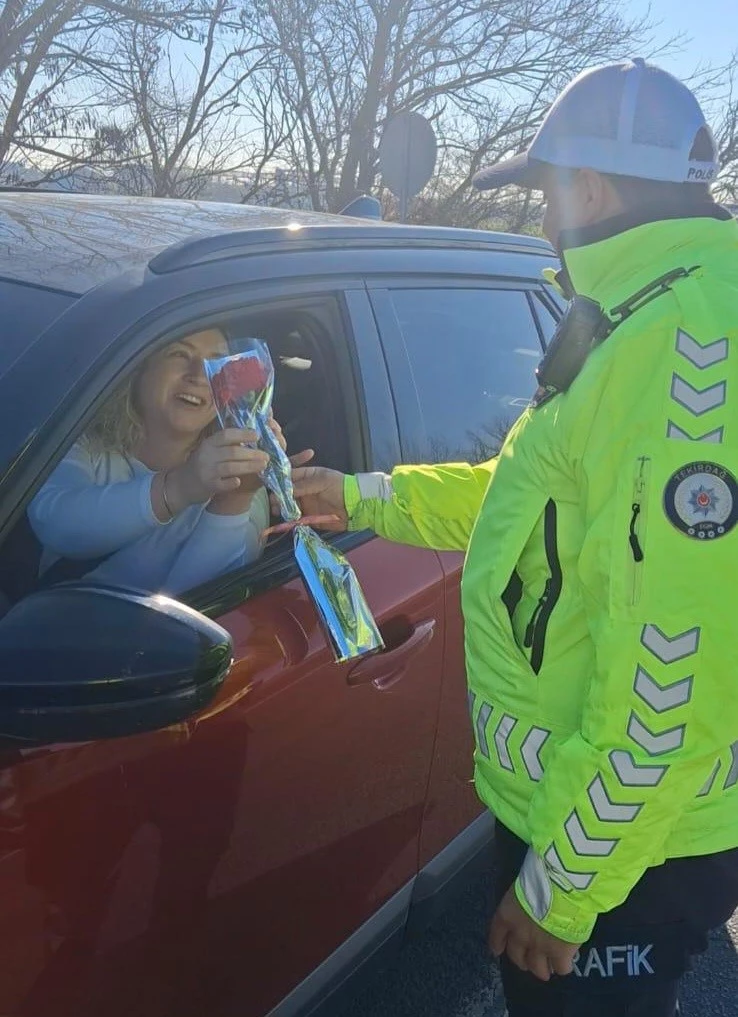 Tekirdağ Emniyet Müdürlüğü’ne bağlı Bölge Trafik ekipleri, 8 Mart Dünya Kadınlar Günü kapsamında alışılmışın dışında bir uygulamaya imza attı. Kent genelindeki kontrol noktalarında bu kez sadece kadın sürücüler durduruldu. Ancak herhangi bir cezai işlem uygulanmadı. Bunun yerine polis ekipleri, kadın sürücülere karanfil takdim ederek günlerini kutladı.