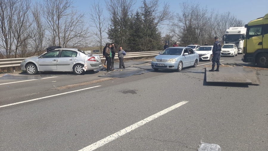 Kaza sebebiyle araç kuyruklarının oluştuğu TEM Otoyolu İstanbul istikameti, iki şeritli trafiğe açıldı.