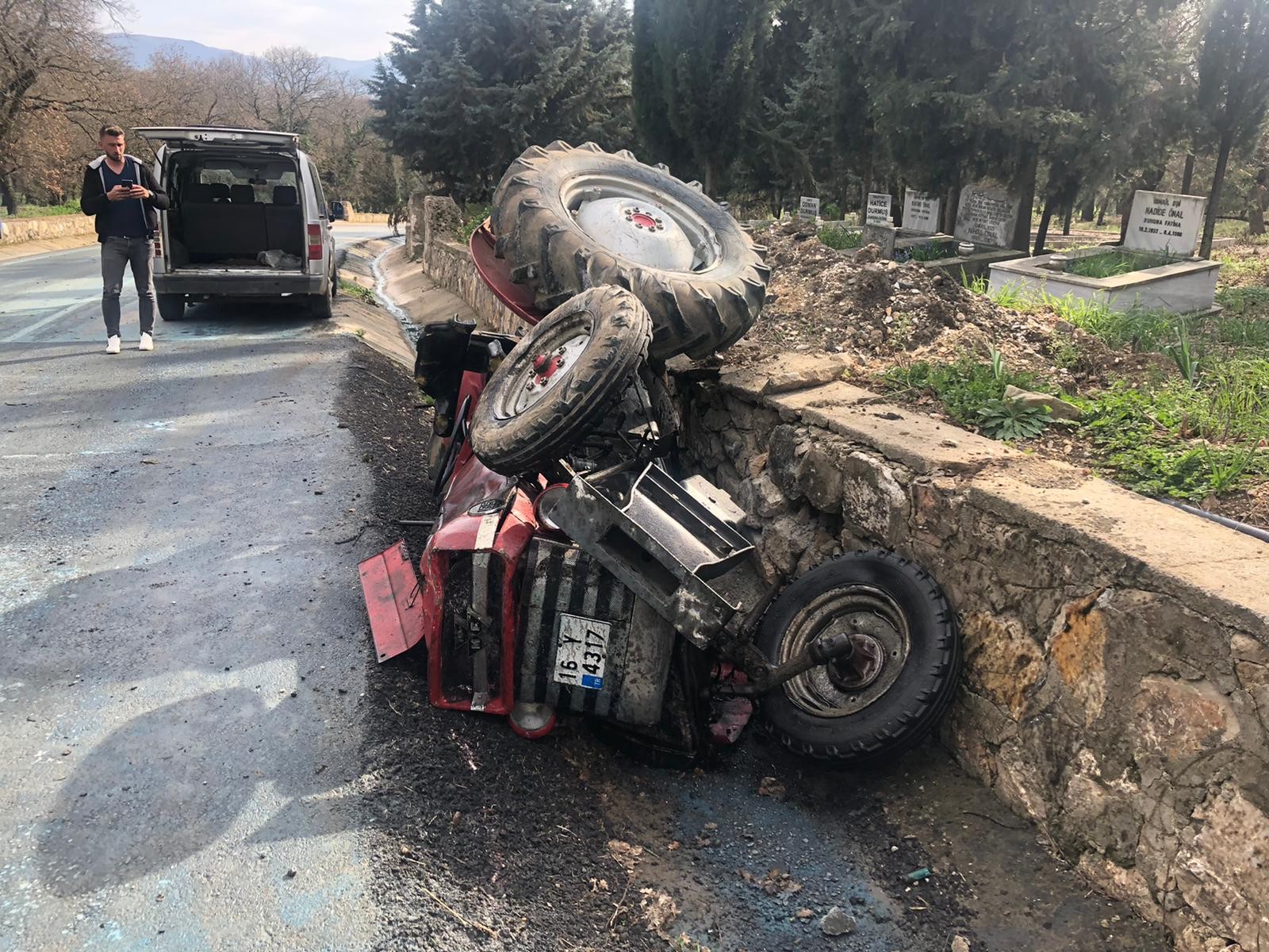Orhangazi?ye bağlı Üreğil Mahallesinde meydana gelen traktör kazasında, yokuş aşağı inen bir traktör vitesten çıkarak hızla savrulunca mezarlık duvarına çarptı. Takla atan traktörün sürücüsü boş kanala düşerek yaralandı.