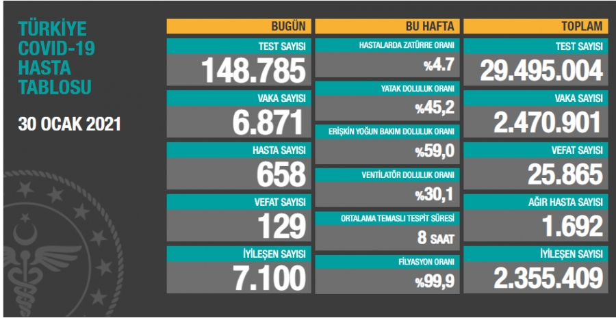Sağlık Bakanlığı'nın internet sitesinde yer alan "Türkiye Günlük Koronavirüs Tablosu"nun güncel verileri paylaşıldı.