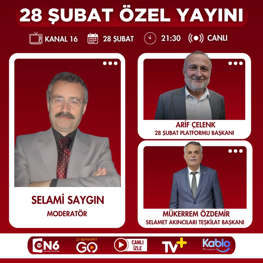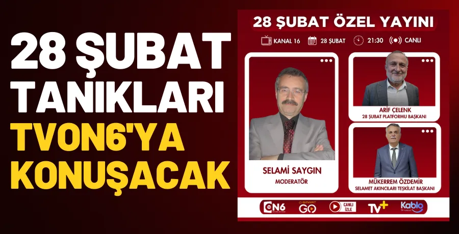 Canlı yayın formatında gerçekleştirilecek programda, 28 Şubat süreci tüm yönleriyle ele alınacak. Yayın, TVON6 ekranlarından ve ilgili platformlardan izlenebilecek.