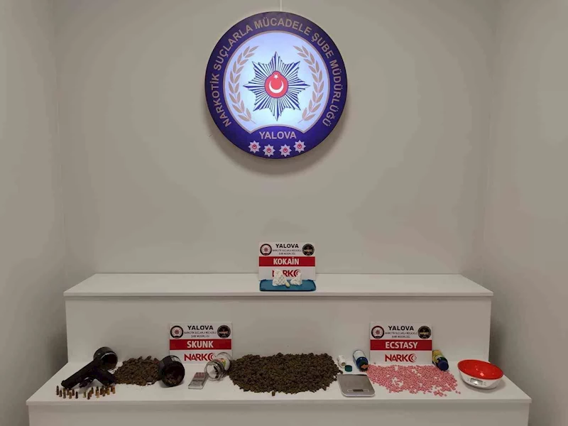 Alınan bilgiye göre, Yalova Emniyeti Narkotik Suçlarla Mücadele Şube Müdürlüğü ekipleri, 9 farklı adrese narkotik maddeler arama köpeklerinin eşliğinde eş zamanlı operasyon gerçekleştirdi. Operasyonda 845 adet ekstazi, 202.80 gram kokain, 558 gram skunk, 1,62 gram Afyon sakızı, tabanca, tabanca fişeği ve 3 hassas terazi ele geçirildi. Operasyonda gözaltına alınan 8 şüpheli emniyetteki işlemlerinin ardından adliyeye sevk edildi. Zanlılardan T.A., U.B., M.B., M.O.B. ve B.B. tutuklanarak cezaevine gönderildi.