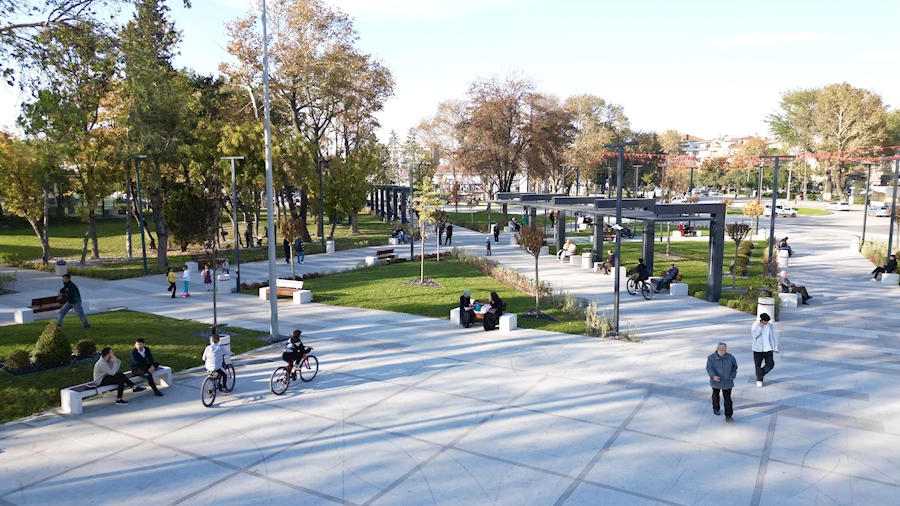 İnegöl Belediyesi, şehre modern ve sembol bir meydan kazandırmak için yaptığı planlama kapsamında merkezde köklü bir değişime imza attı. İlk olarak eski devlet hastanesinin bulunduğu alanda; yeni belediye hizmet binası, Nöbetçi Kitaphane, Gastro İnegöl restoranı, yer altı otoparkı, sergi salonu ve kafeteryanın yer aldığı bir yaşam alanı oluşturuldu. Ardından eski hükümet konağı ile hemen karşısında bulunan eski kaymakamlık lojmanı ve sedir kafenin yer aldığı alanda Merkez Park hayat buldu. Bu alanda da yer altı otoparkıyla beraber Gastro Kafe hizmet vermeye başladı. Son olarak Atatürk Anıtının olduğu bölgede yapılan düzenlemelerle bu 3 bölge aynı formlarda birbirlerini tamamlayacak şekilde İnegöl’ün Yeni Kent Meydanı ve Yaşam Alanını oluşturdu.