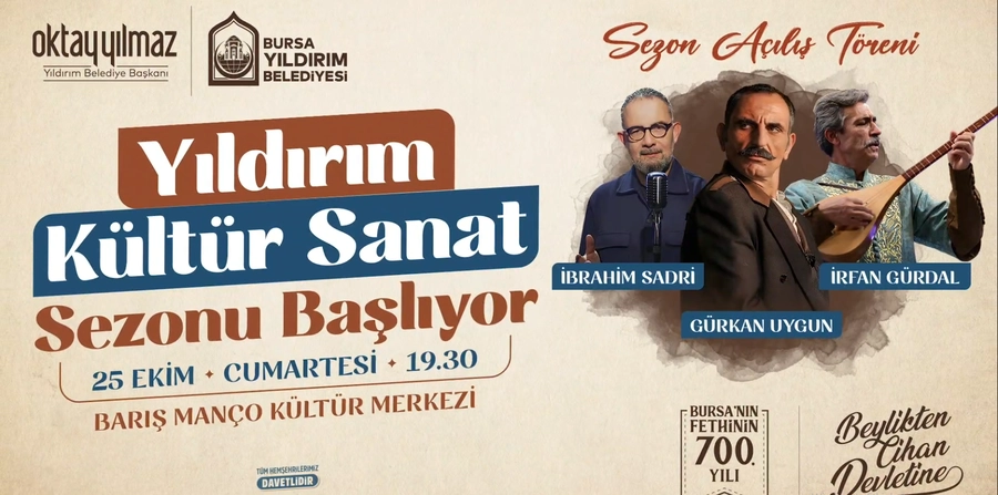 Yıldırım Belediyesi, yeni kültür ve sanat sezonunun açılışını görkemli bir programla yapmaya hazırlanıyor. 25 Ekim Cumartesi günü saat 19.30’da, Barış Manço Kültür Merkezi'nde düzenlenecek açılış töreni, sanatseverlere unutulmaz bir gece yaşatacak.