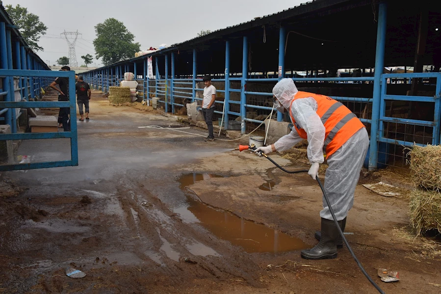 Kurban bayramı yaklaşırken Yıldırım'da büyük ve küçükbaş hayvanların satışının yapıldığı tüm kurban satış noktaları, Yıldırım Belediyesi Veteriner İşleri Müdürlüğü'ne bağlı ekipler tarafından titizlikle ilaçlanıyor.